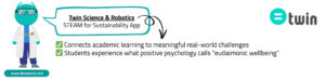 Twin Science & Robotics: STEAM for Sustainability App connects academic learning to meaningful real-world challenges, satisfying students’ deep need for purpose and contribution. When students design solutions for environmental problems or explore renewable energy technologies, they experience what positive psychology calls “eudaimonic wellbeing” the satisfaction that comes from meaningful engagement.